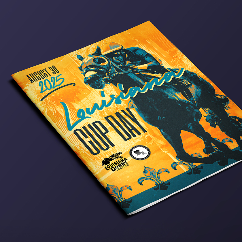 This magazine cover for Louisiana Downs Casino was created to promote their annual Louisiana Cup Day program, blending client provided racing visuals with a strong sense of Louisiana flavor. I built a bold, duotone color palette that amplifies motion and intensity and included some Louisiana-inspired elements in the fleur-de-lis pattern and the overlayed New Orleans style balcony in the background. The dynamic typography and angled layout helped convey speed and excitement. This piece won a Silver Addy award at the American Advertising Awards in Shreveport in February 2026.