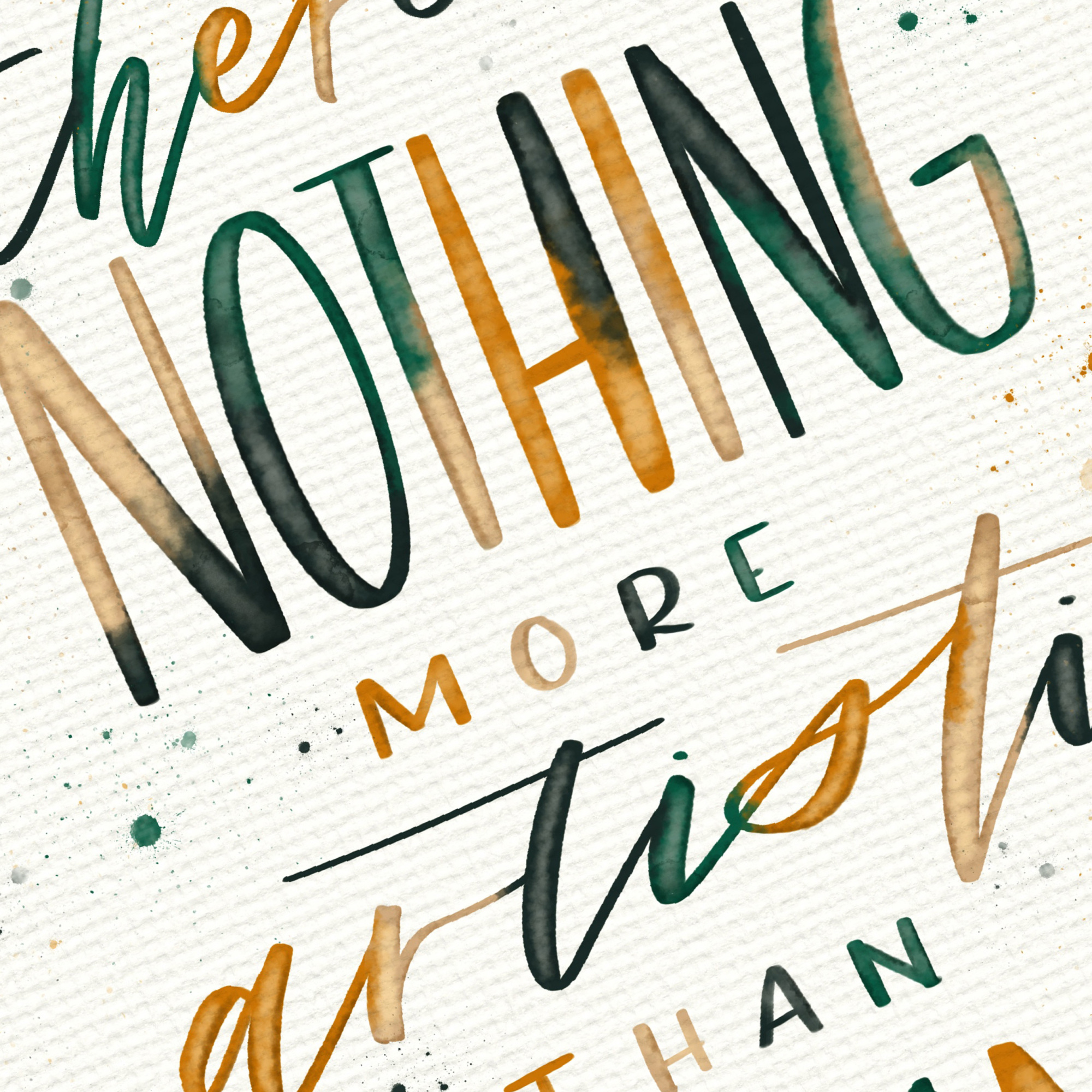 Nothing More Artistic This hand-lettered piece was created in Procreate as I explored digital watercolor textures. The earthy tones and organic splatters enhance the fluid yet structured lettering, bringing the heartfelt message to life.
